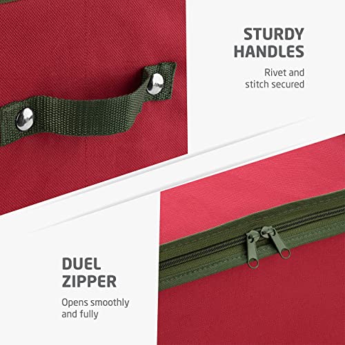 ZOBER Christmas Ornament Storage Box with Dual Zipper Closure - Box Contributes Slots for 64 Holiday Ornaments 3-Inch, Xmas Decorations Accessories, Made of Nonwoven Tear-Proof Material, Red