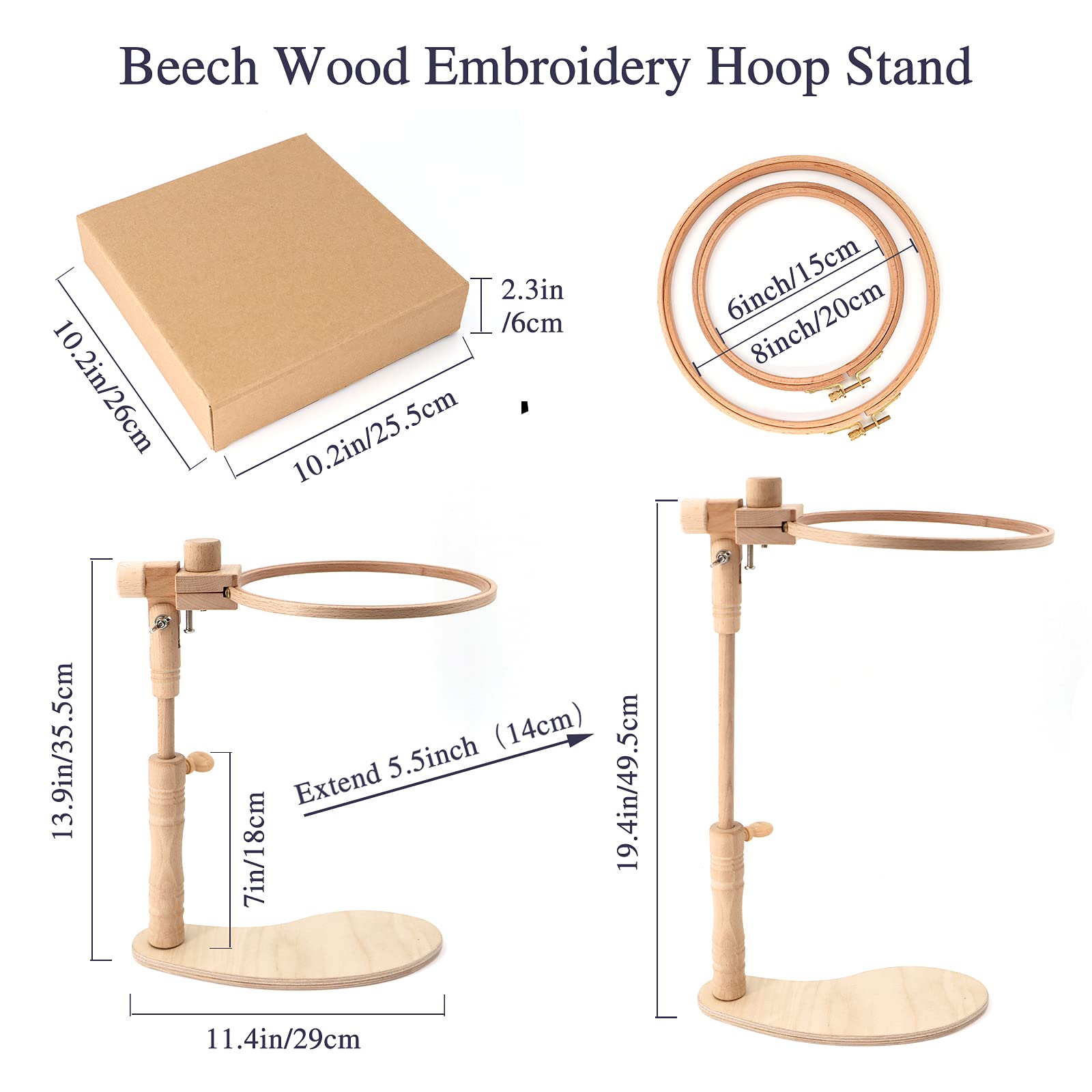 ZOCONE Beech Wood Adjustable Rotated Embroidery Hoop Stand with 2 Pcs 6'' 8'' Embroidery Hoops, Wooden Embroidery Stand, Embroidery Hoop Holder for Cross Stitch and Embroidery Project (A)